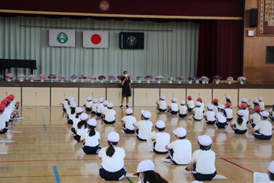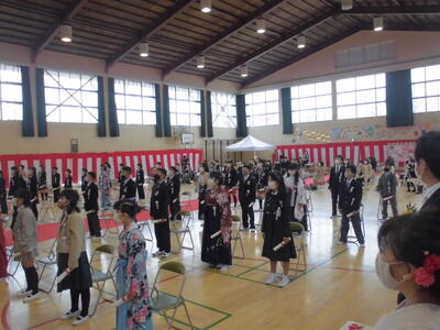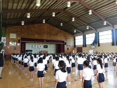 本日はR3年度の修了式でした。体育館で、密を避けながら、マスク着用で実施しました。