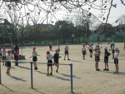 ( なわとびや、ダッシュなど、それぞれが運動に取り組んでいます。)