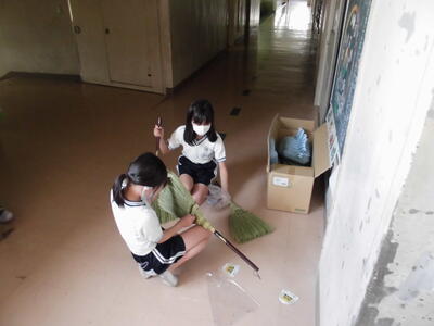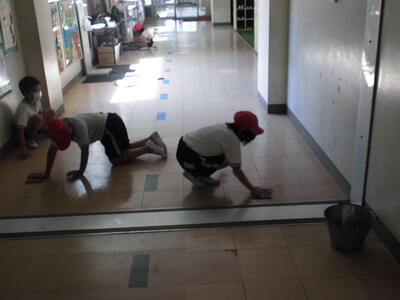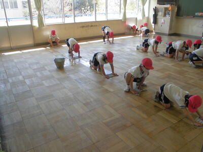 清掃の時間、子供たちは真剣に清掃活動を行っています。