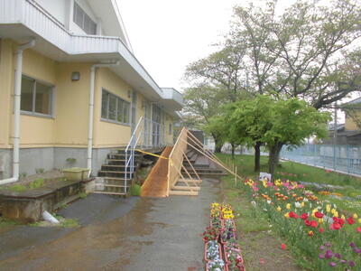 ※学校では、今年度、トイレの全面改修工事および特別教室エアコン設置工事が行われます。それに伴い、昨日から、学校敷地内に、仮設事務所や資材置き場等の確保のため立入・通行禁止区域が設けられています。そのため、従来の駐車場所に車が停められなくなるなどしますので、来校の際にはじゅうぶんお気をつけください。