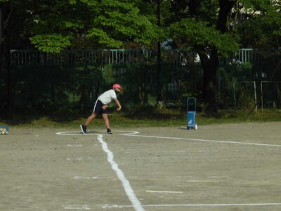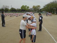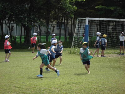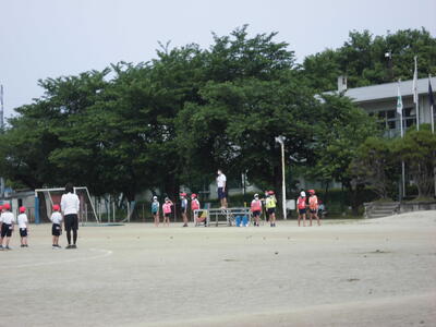 ( ↓ ビブスを着けた運動委員を中心に進めました。)