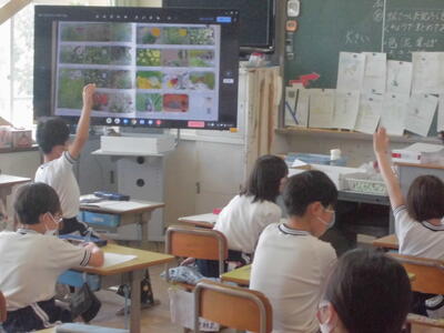 学校では、GIGAスクール構想に伴い一人一台配備されたタブレットを活用して学習をおこなっています。今日は5年生が、タブレットの新しいソフトの機能を使って、自分の意見を入力し、他の児童や先生と共有・交換して効果的な学習を進めました。ICTサポーターさんにも協力してもらいながら学習を進めました。
