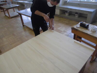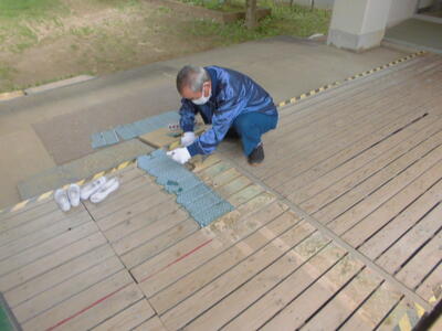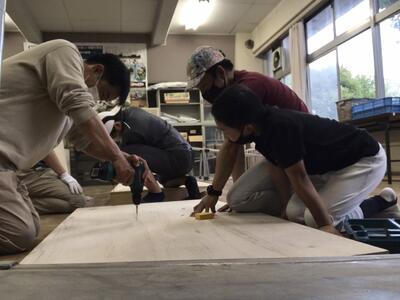 ( ↓ 放課後、先生たちで仕上げや安全点検をおこないました。)
