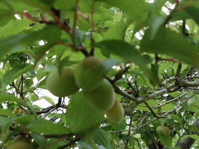 ( ↓ 校庭沿いのアジサイ。これから咲いていきます。)