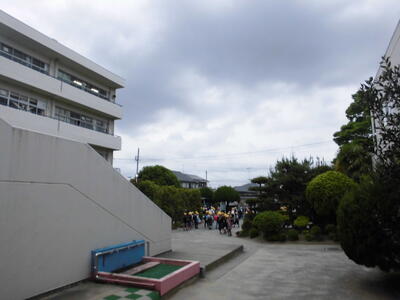 今日は雨が降ったり、やんだりの一日となりました。6時間授業を終えて、子供たちが下校するときは、曇り空でしたが雨はやんでいました。