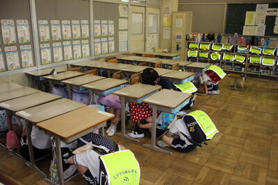 このあと教室での最後の学級活動をおえて、子供たちは交通安全ボランティアさんに見守られながら下校しました。