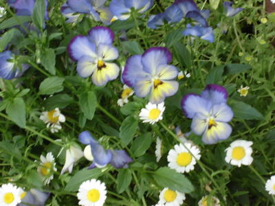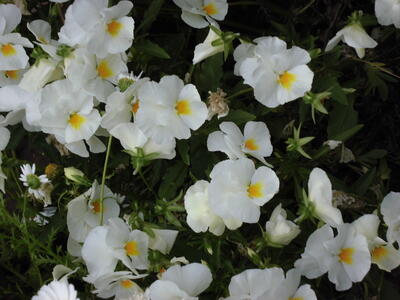 ( ↓ 校庭の片隅に咲いている、春のなごりの花。)