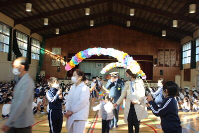 今週から、運動会の全体での練習が始まります。今日の朝は、開会式での入場の確認です。