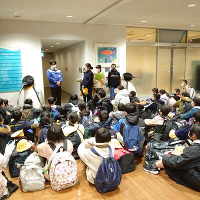5年生の教室の廊下では、ホタルの幼虫の飼育が始まっています。先日、ホタルの里親の会の方より分けていただいたホタルの幼虫を、5年生が世話をしています。このあとの冬を越え、春になったら学校内の「自然の森(通称「トトロの森」)」の水路に放流します。