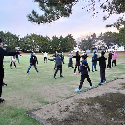まだ感染症対策に気をつけながら、マスクを着用し、声を出すのはひかえて、運動しました。
