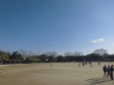 今日の朝は「さわやかタイム」。さわやかに晴れ渡った空のもと、全校で運動の時間です。