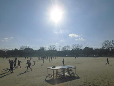 今日の昼休みは「あおぞらタイム」。長めの昼休みで、子供たちがのびのびと過ごす時間を確保しています。
