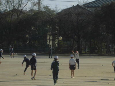本日は体育朝会。全員で外で運動をしました。今回は、ドッジボールをおこないました。