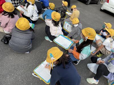 9:15 バスに乗車して出発します。見学地での人数の関係で、クラスでわかれて消防署と帽子店に向かいます。
