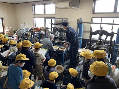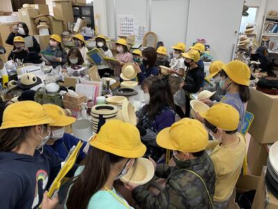 10:00 帽子店での見学を行います。麦わら帽子づくりの工程を説明していただきながら見学します。