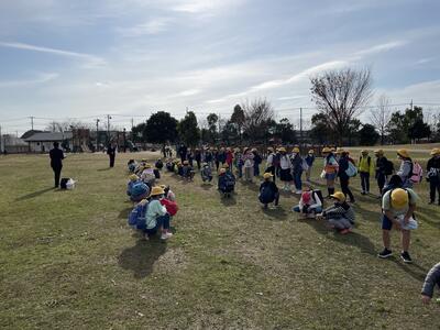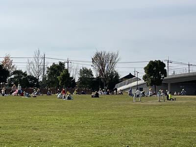 12:40 まつぶし緑の丘公園に到着して、2クラスが合流しました。ここで昼食(お弁当)になります。