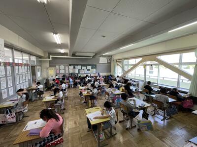 昨日と本日は、学期末の学級懇談会です。コロナ禍なので、授業参観は実施しませんでしたが、担任が保護者の方と懇談をおこないました。5年生は、懇談会の前に、林間学校についての説明会を体育館でおこないました。
