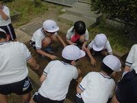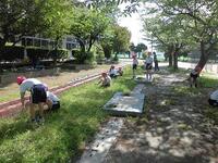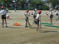 全校で小石や草取りをして、安全にはだしで活動できるように環境を整備しました。