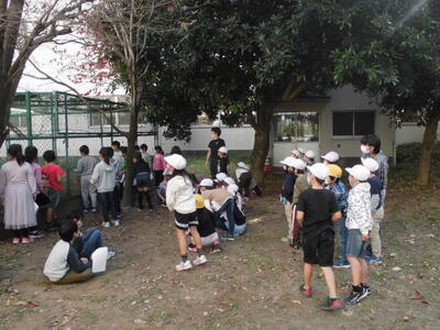 今回は、1~6年生のまでの異年齢集団のたてわり班にわかれて、班ごとに上級生のリーダーシップのもと、校庭で美化活動をおこないました。