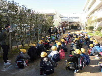 本日の昼休みに避難訓練がありました。関東地方に大地震と、それに伴って校内から出火した設定での避難訓練です。いつもと違うところは、子供たちには事前の予告をせずに、訓練放送が入り、訓練が始まりました。