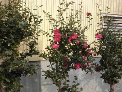 ( ↓ 学校に咲いているサザンカの花)