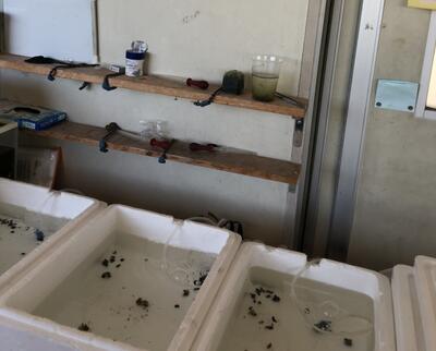 冬休みの学校でも、ホタルの幼虫の世話をおこなっています。