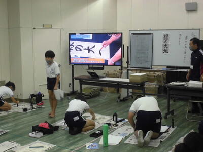 今日の練習は終わりました。雨天で校庭は使えませんでしたが、工夫して練習をおこなうことができました。今度、校庭で実際に合わせて見るのが楽しみです。