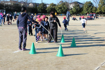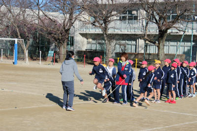小渕っ子の朝は、「一運動」から始まります。学年毎に運動に取り組みます。高学年は1000m走、低学年はそれぞれの学年毎に種目を決めて取り組んでいます。