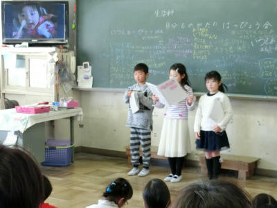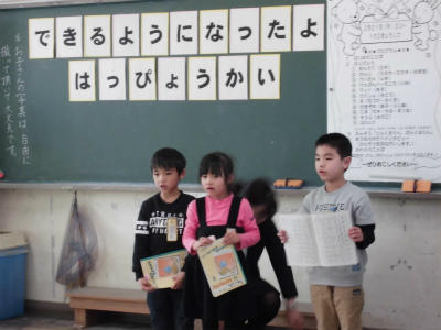 今日の音楽朝会は、1年生と3年生の発表でした。