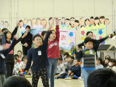 今月の歌が「We wish you a merry Christmas」、1年生の歌が「あわてんぼうのサンタクロース」、そして3年生が「歓喜の歌」と、12月らしい楽しい歌声が響きました。