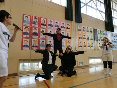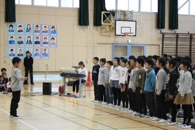準備作業の後、入学式で行う「歓迎の言葉」の練習を行いました。大きな声で、息の合った演技ができていました。当日がとても楽しみです。
