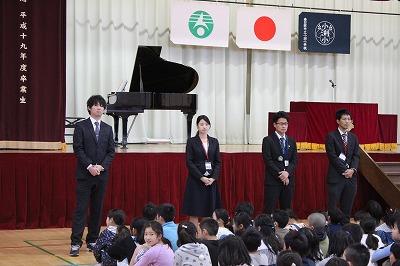 この春、転退職された先生方が集まり、御挨拶いただきました。小渕っ子達は、涙を流しながらも、真剣にお話を聞き、別れを惜しんでいました。
