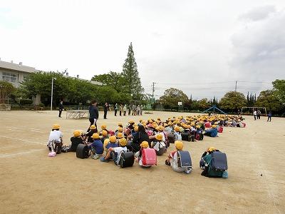 関東地方に震度7の地震が発生、その後、給食室より出火という想定の下、避難訓練が行われました。小渕っ子達は、だまって避難することができました。避難後の整列もきちんとできました。