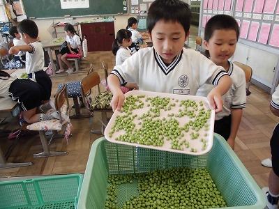 2年生の小渕っこが、グリンピースの皮むきに挑戦しました。ていねいにていねいに皮をむいて、豆を出してくれました。今日の給食に入りました。とってもおいしかったです。2年生のみなさん、ありがとうございました。