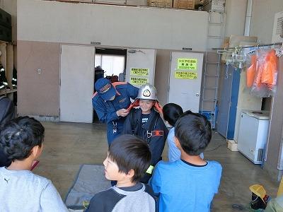 教育センターの隣にある東分署に徒歩で見学に行きました。実際に見る救急車、消防車などを間近に見られて、とても充実した学習となりました。所員の皆さん、公務中にも関わらずていねいに対応していただきありがとうございました。