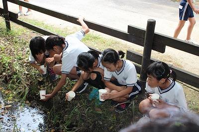 池に住む小魚たちを救出してから、中をきれいにしてくれました。4年生、ありがとう。