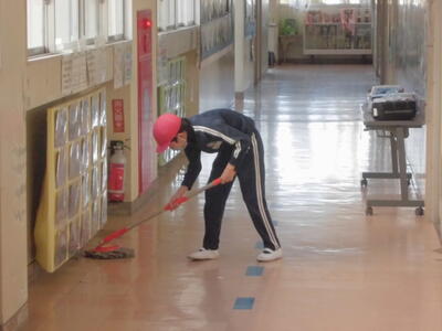 今日の昼の清掃の時間の様子です。小渕小では、「もくもく・てきぱき・すみずみ」を合い言葉に清掃に取り組んでいます。