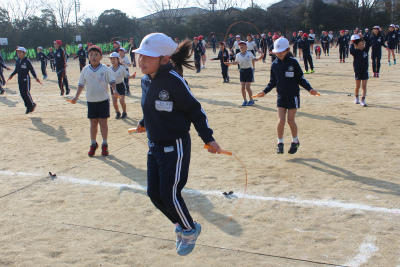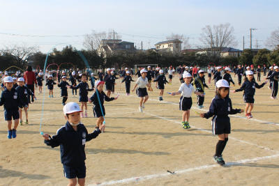 昨日の朝、校内長縄跳び大会を実施しました。 これまでの練習の成果を発揮すべく、どのクラスも頑張りました。5分間で、8の字跳びを何回跳べるかを競います。1年生もすっかり上手になりました。