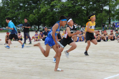 今日の朝は「さわやかタイム」。風はあるものの朝から蒸し暑い中、子どもたちは元気に全力疾走です。