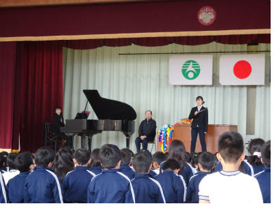 また、音楽朝会後には、3月2日に実施する「6年生を送る会」への招待状が、3年生の代表から6年生に送られました。本番が楽しみです。
