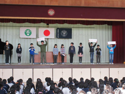 これまで、6年生から順に、各学年の発表をしてきましたが、いよいよ1年生の番となりました。