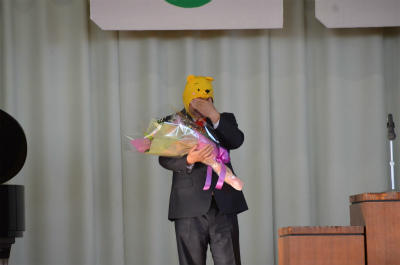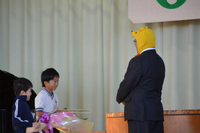 瀬高先生から、みんなに向けてのお礼の言葉やメッセージをいただいたあと、みなさんからも代表児童による花束贈呈や、合唱のプレゼントをしました。