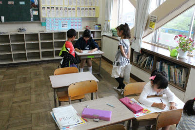 サマースクールでは、保護者の方々や、小渕小卒業の東中生のみなさんが、学習ボランティアとして学習のサポートをしてくれています。本当にありがとうございます。