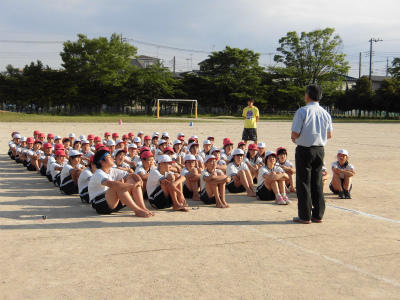 いよいよ今日から水泳の授業が始まりました。授業に先だって、朝、「プール開き」の集会が行われました。
