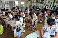教室では、タブレットを使ってドリル学習したり、調べたものを絵に描いたりするクラス、オルガンの音に合わせてイス取りゲームをしているクラス、怖い話をしているクラス、残っている課題を進める子など様々でしたが、雨の日を安全に過ごしていました。