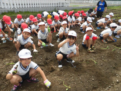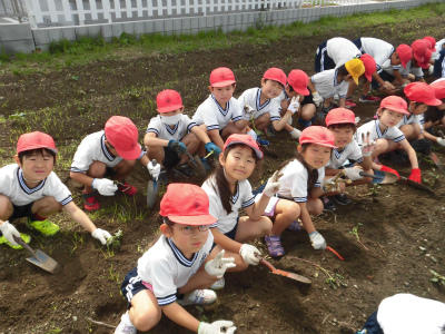 今日は、ボランティアの保護者の方々にプランターの苗植えをしていただきました。