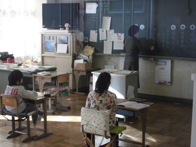 ↓ 1年生は国語の時間です。教科書の『たぬきの糸車』を読んで、自分の考えを発表しています。音読は、みな大きな声で上手に読めるようになってきました。