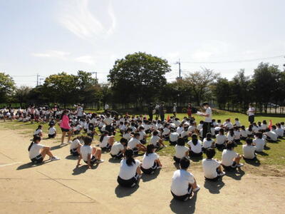 いよいよあさってが運動会です。本日の朝は、雨の予報でしたが、運動会練習の時間には雨もあがり、校庭も乾いていたので、全体練習をすることができました。赤組・白組にわかれて、応援合戦の練習のしあげをおこないました。