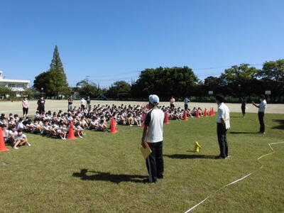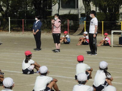 ( ↓ 体育担当の先生からは、これまでの取組や頑張りをいかして、明日の運動会を全員で成功させようとお話がありました。)