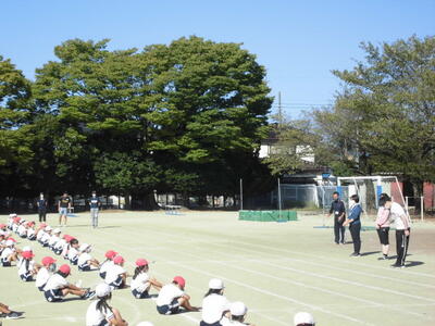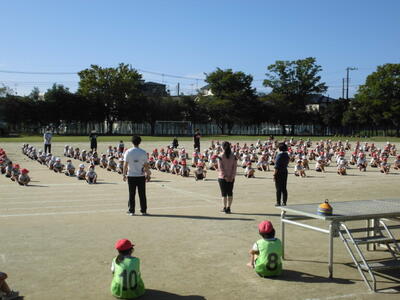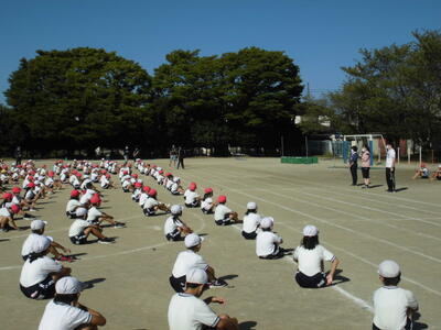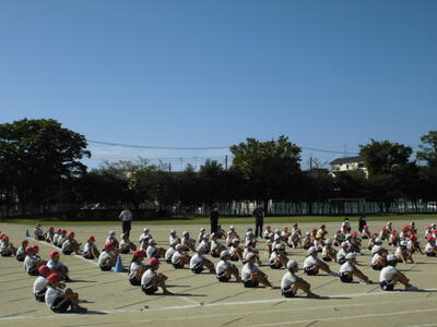朝は、全体で応援合戦の練習をおこないました。密を避けるために、となりとの間隔をじゅうぶんにあけたり、マスクをしたまま声を出したりと、例年とは違う形での取組ですが、子供たちは精一杯に練習に励んでいます。